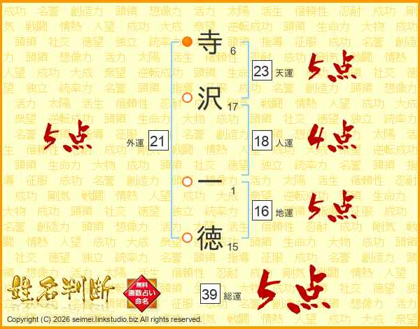 寺沢一徳さんの総運は39画の5点!
