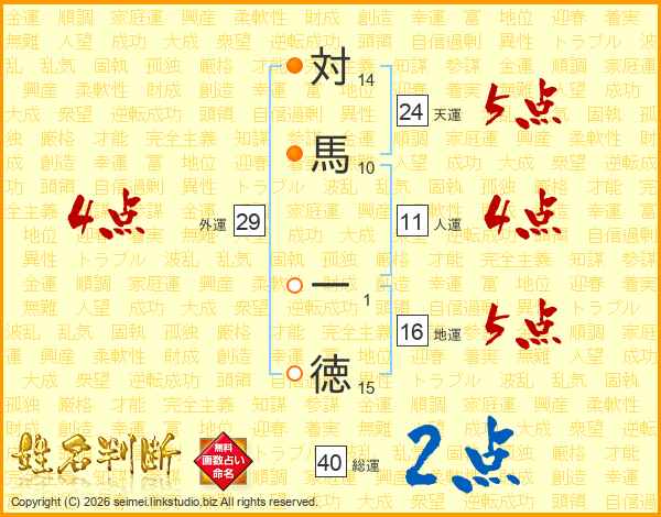 対馬一徳さんの総運は40画の2点!