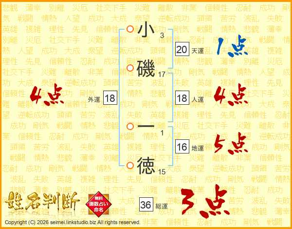 小磯一徳さんの外運は18画の4点!