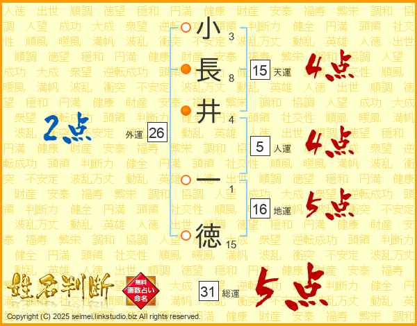 小(3画)長(8画)井(4画) 一(1画)徳(15画)