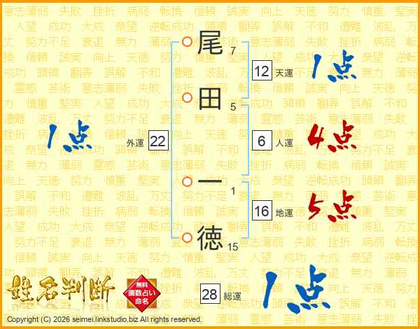 尾田一徳さんの総運は28画の1点!
