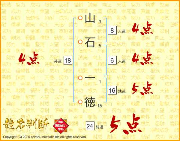 山石一徳さんの総運は24画の5点!