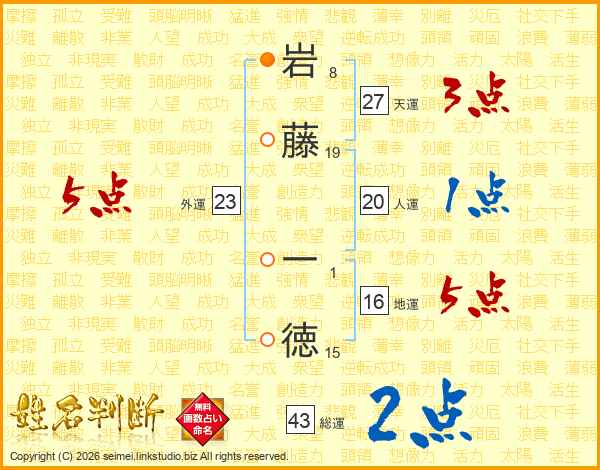 岩藤一徳さんの天運は27画の3点!