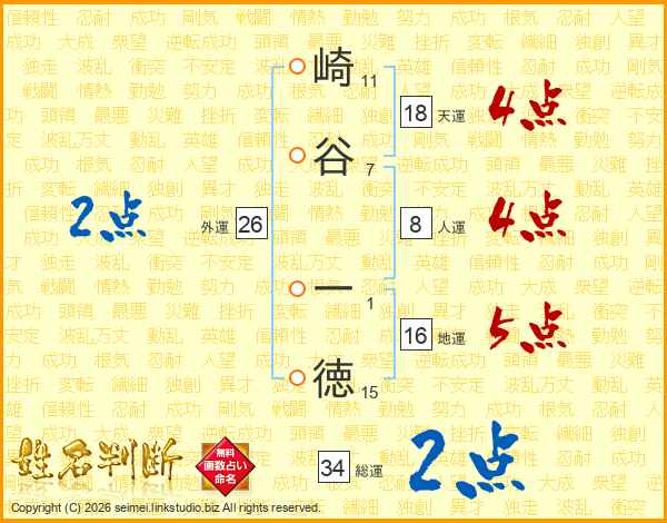 崎谷一徳さんの天運は18画の4点!