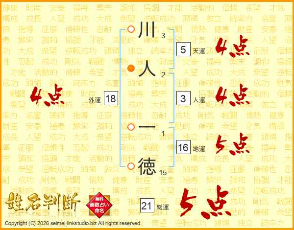 川人一徳さんの総運は21画の5点!