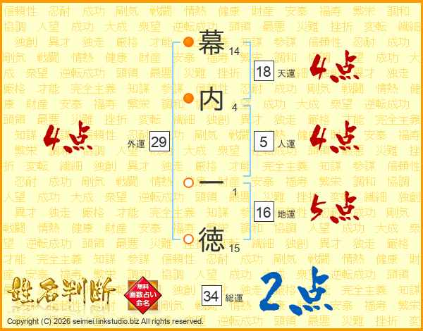 幕内一徳さんの総運は34画の2点!