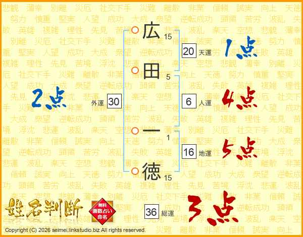広田一徳さんの総運は36画の3点!