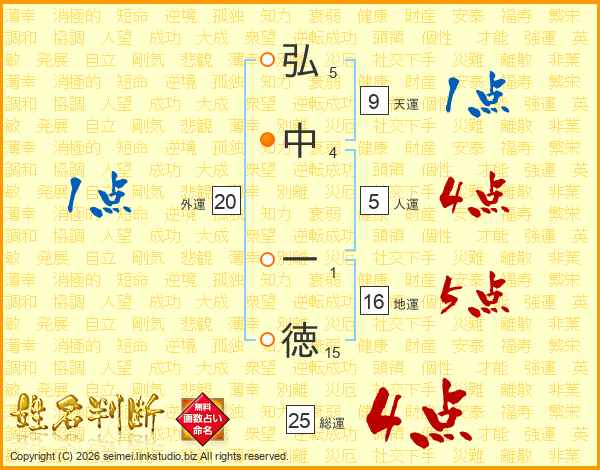 弘中一徳さんの総運は25画の4点!