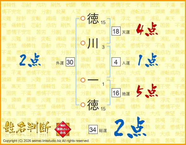 徳川一徳さんの総運は34画の2点!
