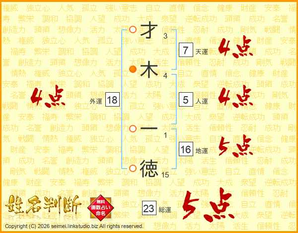 才木一徳さんの総運は23画の5点!