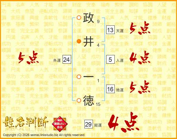 政井一徳さんの総運は29画の4点!