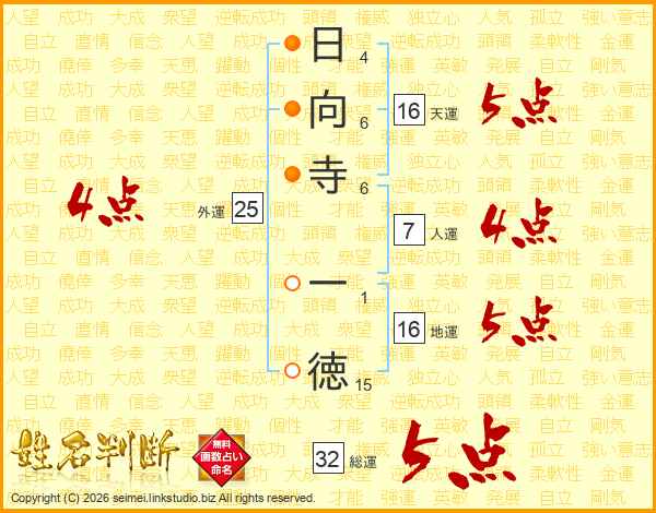 日向寺一徳さんの総運は32画の5点!