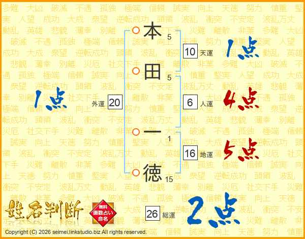 本田一徳さんの総運は26画の2点!