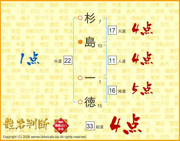 杉島一徳さんの総運は33画の4点!