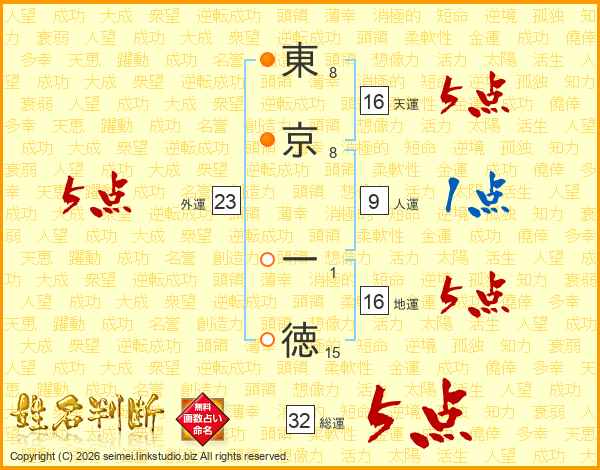 東京一徳さんの総運は32画の5点!