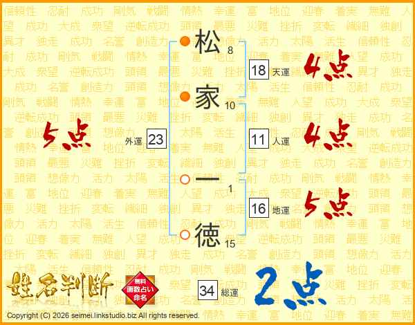 松家一徳さんの総運は34画の2点!
