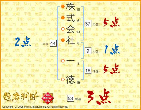 株式会社一徳さんの天運は37画の5点!