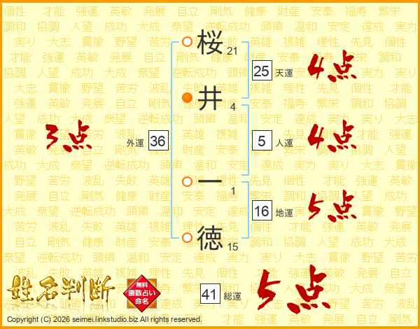 桜井一徳さんの天運は25画の4点!