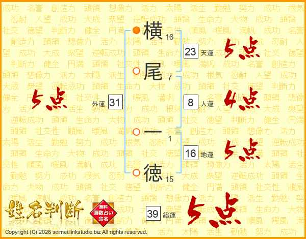横尾一徳さんの総運は39画の5点!