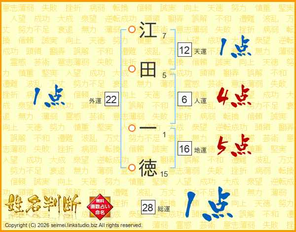 江田一徳さんの総運は28画の1点!