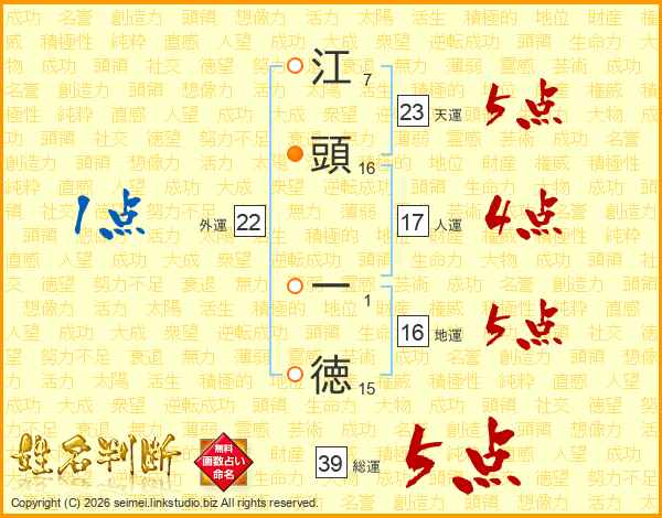 江頭一徳さんの総運は39画の5点!