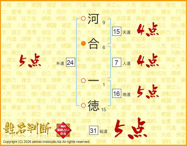 河合一徳さんの総運は31画の5点!