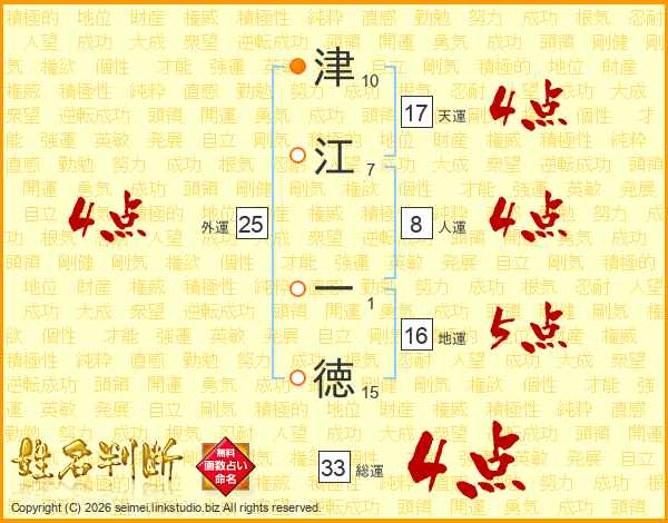 津江一徳さんの天運は17画の4点!