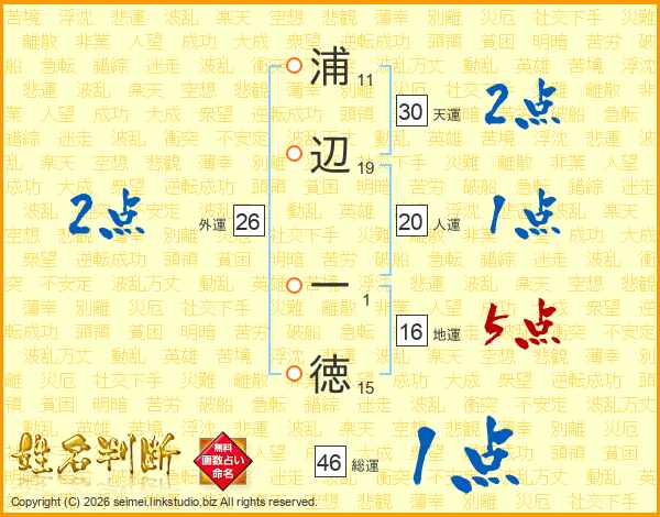 浦辺一徳さんの総運は46画の1点!