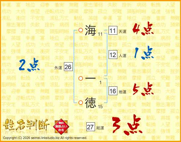 海一徳さんの総運は27画の3点!