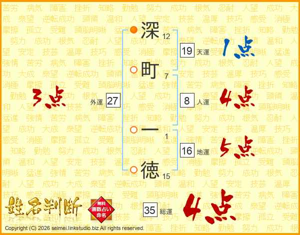 深町一徳さんの総運は35画の4点!