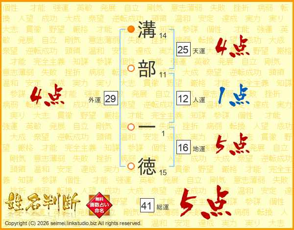 溝部一徳さんの総運は41画の5点!