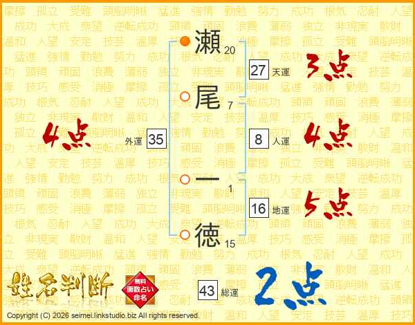 瀬尾一徳さんの天運は27画の3点!