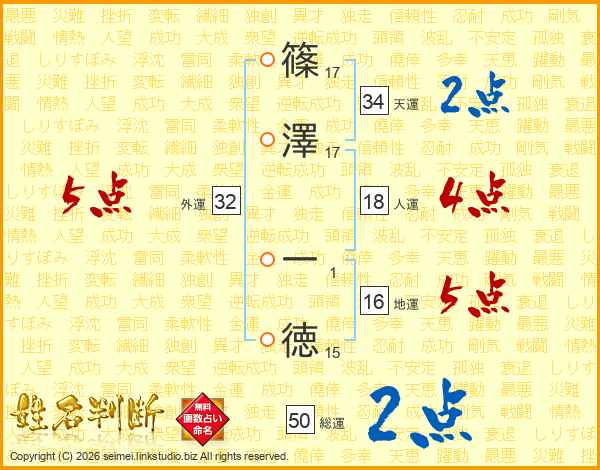 篠(17画)澤(17画) 一(1画)徳(15画)