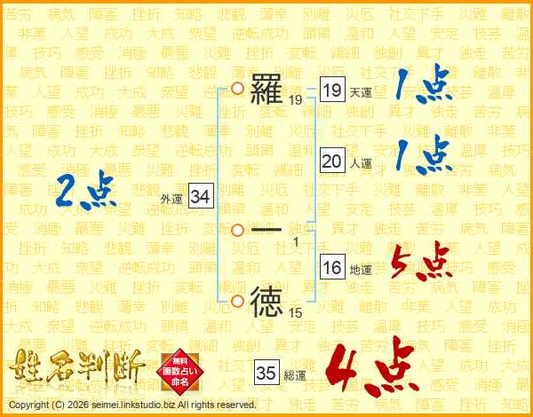 羅一徳さんの総運は35画の4点!