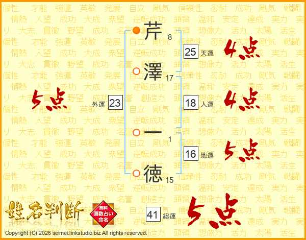 芹(8画)澤(17画) 一(1画)徳(15画)