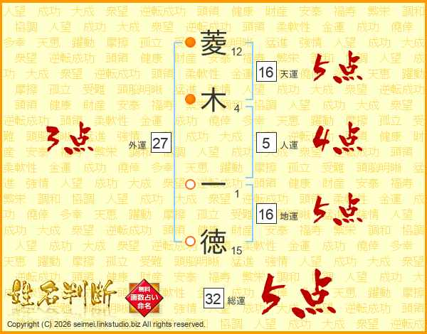 菱木一徳さんの総運は32画の5点!