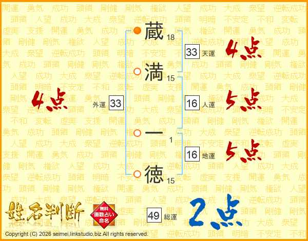 蔵満一徳さんの天運は33画の4点!