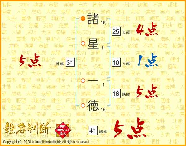 諸星一徳さんの外運は31画の5点!