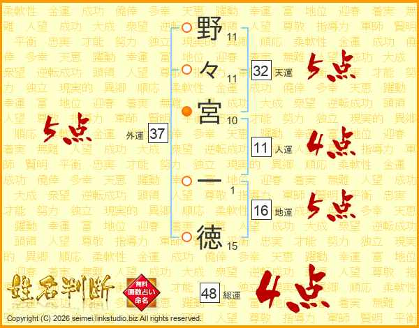 野々宮一徳さんの総運は48画の4点!