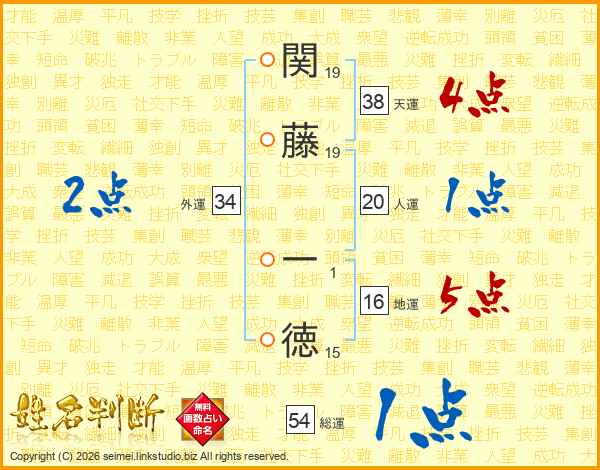 関藤一徳さんの天運は38画の4点!