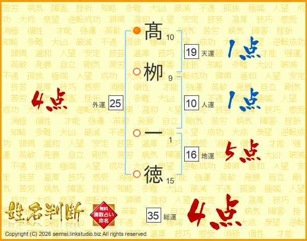 髙栁一徳さんの総運は35画の4点!