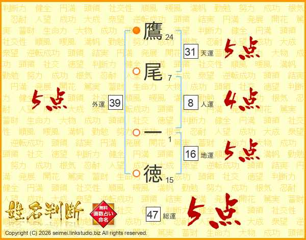 鷹尾一徳さんの総運は47画の5点!