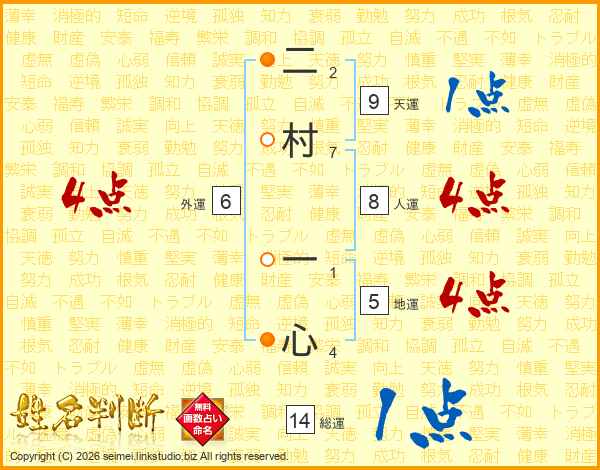 二村一心さんの総運は14画の1点!
