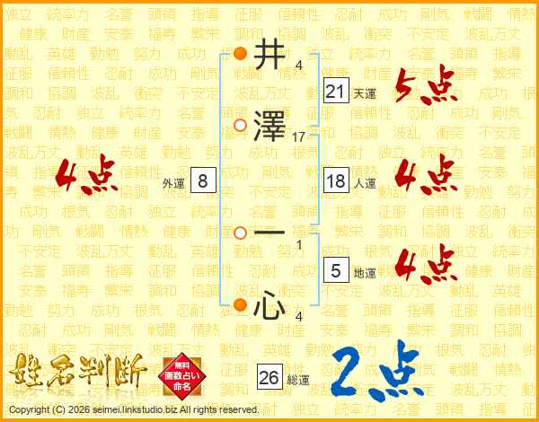井澤一心さんの総運は26画の2点!