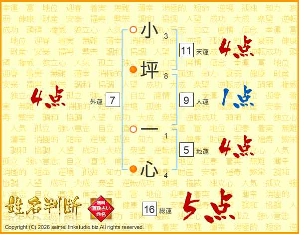 小坪一心さんの総運は16画の5点!