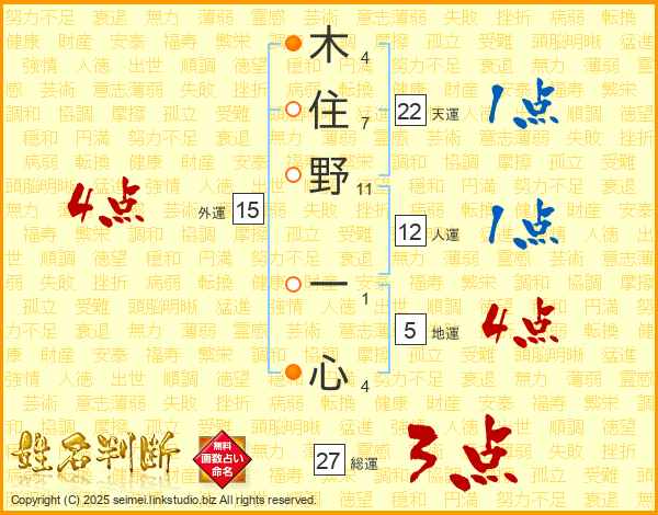 木住野一心さんの総運は27画の3点!
