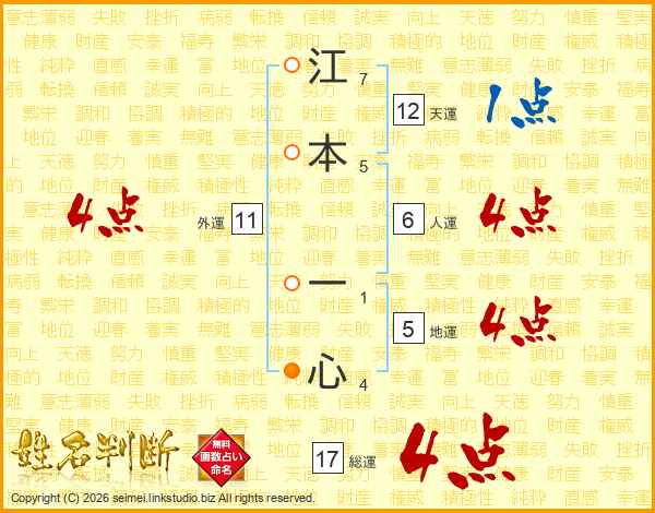 江本一心さんの総運は17画の4点!