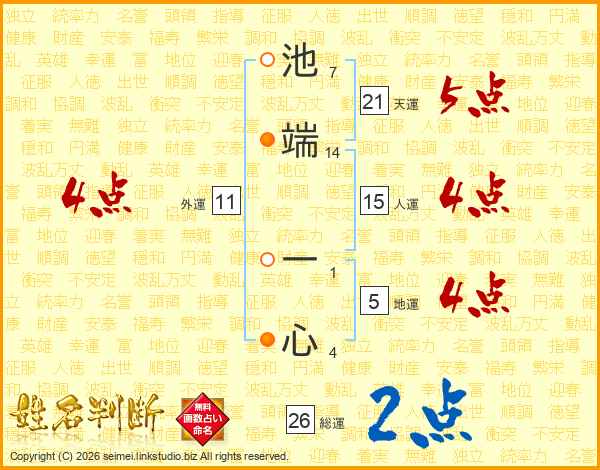 池端一心さんの人運は15画の4点!