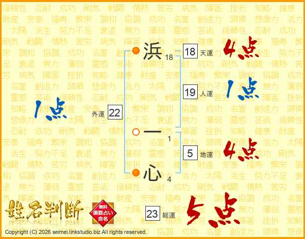 浜一心さんの総運は23画の5点!
