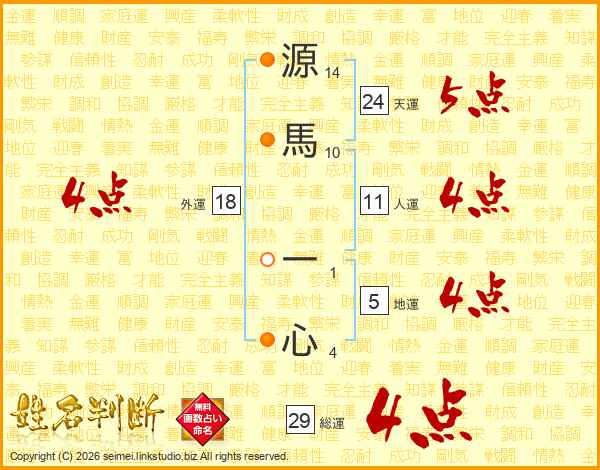 源馬一心さんの総運は29画の4点!